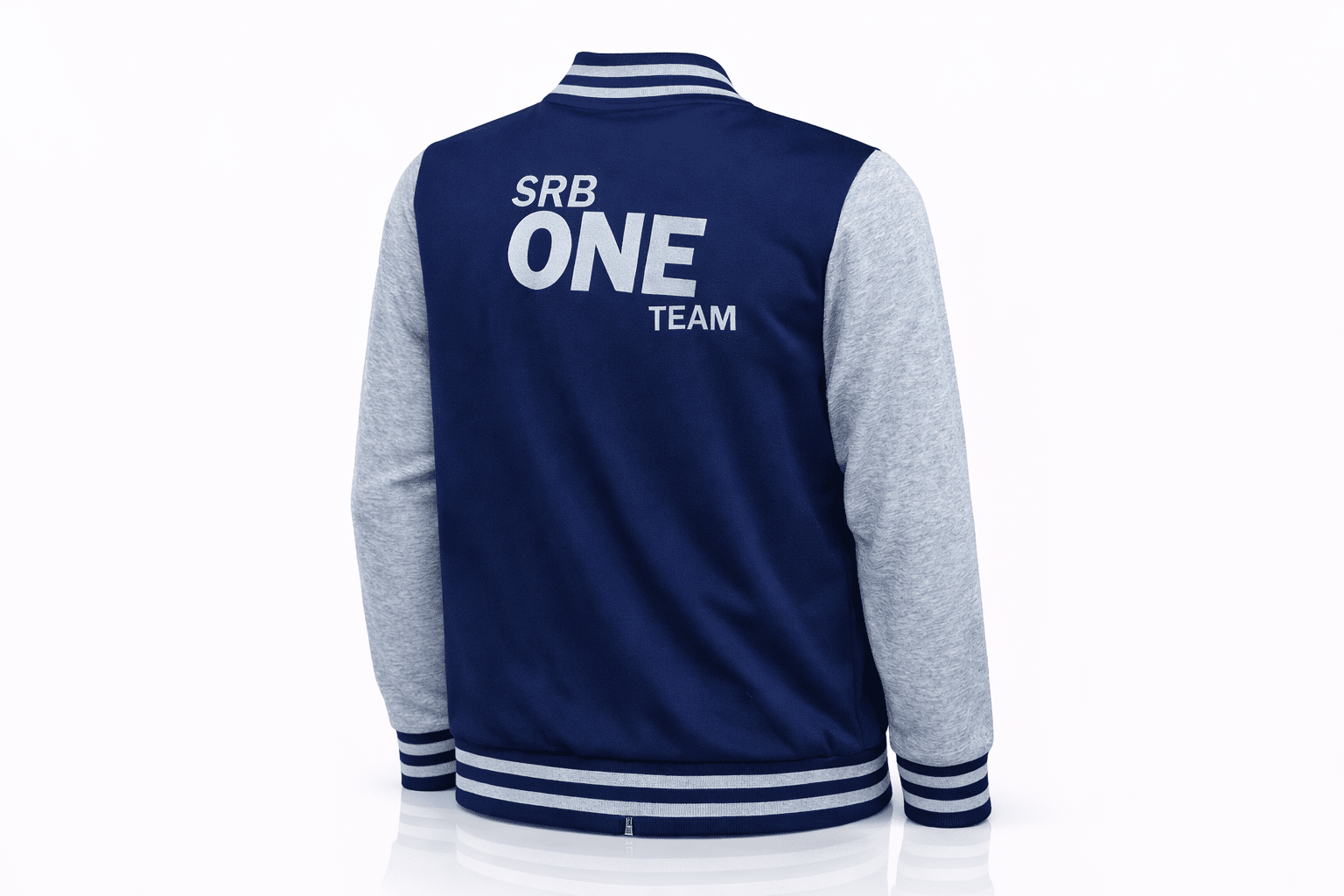 – ด้านหลังตรงกลาง คำว่า SRB ONE TEAM ขนาด 20 ซม. ( สีเทา )