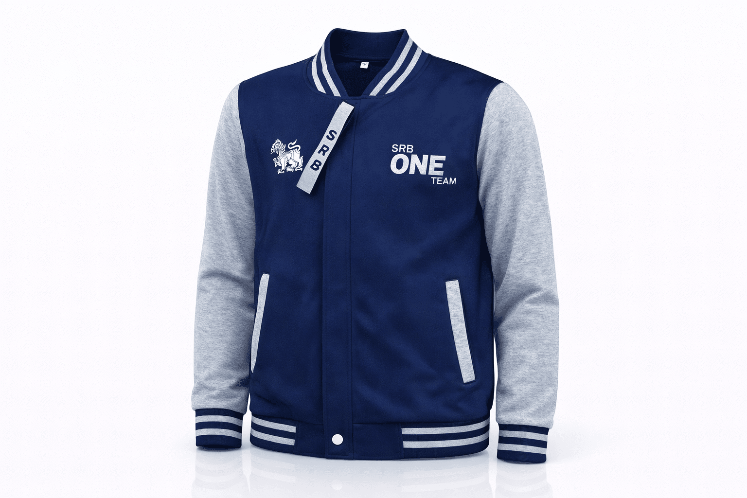 – ด้านหน้า อกซ้าย คำว่า SRB ONE TEAM ขนาด 8.5 ซม. ( สีเทา )